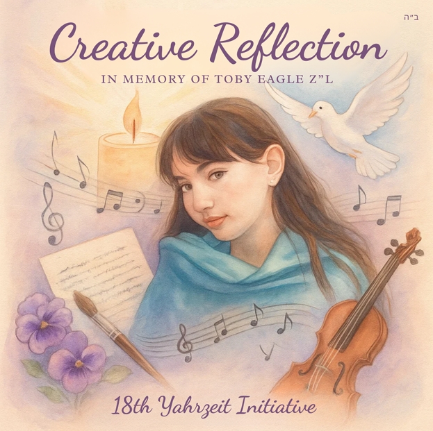 In honor of Toby’s 18th yahrzeit, והחי יתן אל לבו, her family launched a creative initiative inviting people around the world to reflect on and interpret the meaning of the haunting melody she composed at just 17 years old. They welcomed submissions in any creative medium — music, art, poetry, sculpture, or creative writing — using the lyrics of Toby’s Song “is it fair?” as inspiration. The goal was for each creation to become a source of impact and inspiration, encouraging others to grow in mitzvos and acts of kindness. The initiative was open to all ages, male and female. From these submissions, the Eagle family selected one especially inspiring piece, awarding its creator $900 and an additional $900 to the tzedakah of their choice